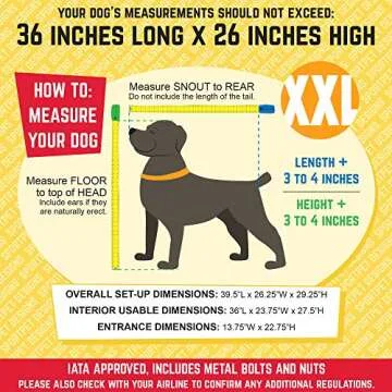 Show moreIntroducing the SportPet Designs Plastic Kennels Rolling Plastic Wire Door Travel Dog Crate in XXL, the ultimate traveling companion for your furry friend! Crafted with durability and convenience in mind, this kennel provides a safe and comfortable space for pets during travel, whether by car, train, or plane. This IATA airline approved travel crate ensures that your pet meets airline regulations while offering a reliable shelter with dimensions suitable for dogs under 36 inches long and 26 inches high. Featuring a sturdy plastic construction, it promises easy assembly and a long-lasting lifespan, making it an excellent investment for pet lovers.