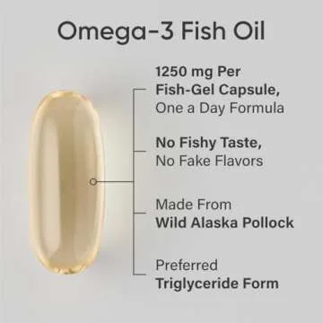 Show more Discover the transformative benefits of the Sports Research Triple Strength Omega 3 Fish Oil, your go-to solution for enhancing your omega-3 intake without the unpleasant fishy aftertaste commonly associated with fish oil supplements. With a remarkable 1250mg of Omega-3 per serving, this high-potency formula is derived from wild Alaska Pollock, sourced sustainably from pristine waters and undergoes rigorous testing to guarantee purity and freshness. This product delivers a potent blend of essential fatty acids, specifically 690mg of EPA and 260mg of DHA, which are vital for supporting heart and brain health.