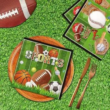 Elevate your party experience with our Sports Themed Birthday Party Supplies. This set includes 40 meticulously designed napkins that measure 6.5x6.5 inches (or 13x13 inches when unfolded), perfect for any sports lover celebrating their special day. Crafted from premium, high-quality paper, each napkin is not just visually appealing, but also offers a soft touch and exceptional water absorption. These napkins efficiently handle spills while enhancing your sports-themed gathering.