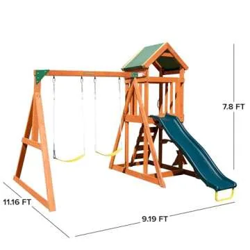 Sportspower Scottsdale Wood Swing Set: 2 Adjustable Swings, Sandbox, Rock Climber, Covered Deck, 1 Slide - Exceeds ASTM Safety Standards