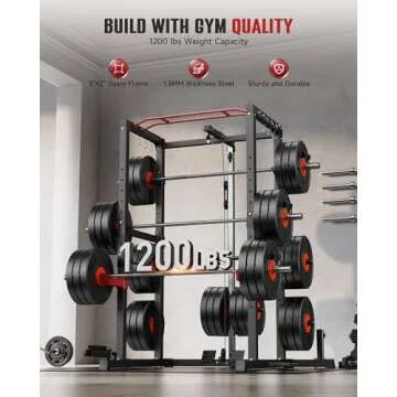 Show more Introducing the Sportsroyals Multifunction Power Cage, the ultimate solution tailored for fitness enthusiasts seeking versatility, stability, and safety in their home gym. This power cage is expertly crafted from 50 X 50mm commercial steel, ensuring a robust construction that supports an impressive weight capacity of 1200 lbs. Weighing in at 150 lbs, and designed with reinforcements for enhanced stability, this gym-quality equipment guarantees durability for years of intense workouts. Unlike many conventional power racks, the Sportsroyals power cage seamlessly integrates multiple workout functionalities into a compact design, providing you with an all-in-one training experience without the clutter of additional gym equipment.