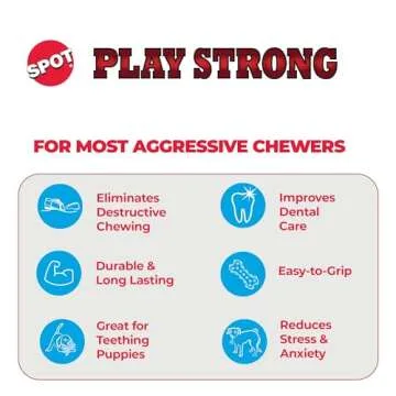 Show more If you're on the hunt for the ultimate gift for an aggressive chewer, look no further than the innovative Play Strong Series Toy from SPOT. Crafted from a premium thermoplastic rubber (TPR), this durable dog toy is engineered to withstand the fiercest gnaws and bites. Unlike conventional toys, the TPR material expertly combines the toughness of plastic with the flexibility of rubber, creating a dependable companion for your large and giant furry friends. Whether it's playtime at the park or a relaxing day at home, this toy is designed for countless hours of fun and engagement.