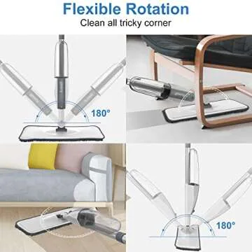 Spray Microfiber Mop for Floor Cleaning - Dust Dry Wet Mop with 4 Reusable Refillable Washable Chenille Mop Head Replacement Pads for Commercial and Home Kitchen Hardwood Laminate Vinyl Tile Floor Mop