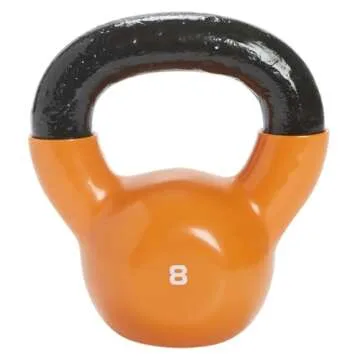 Show more Meet the SPRI Kettlebell Weights Deluxe, your ultimate workout partner! Designed for fitness enthusiasts of all levels, these kettlebells combine functionality with fun for an engaging and effective workout experience. Whether you're lifting in a professional gym or in the comfort of your home, this 8-pound kettlebell is ideal for various exercises, including squats, cleans, snatches, and more. The vibrant orange hue not only adds a splash of color to your workout routine but also serves as a clear indicator of weight, making it perfect for quick selections between sets.