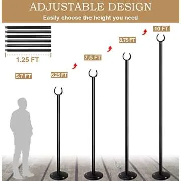 Sprimden 10ft String Light Poles for Outdoors, Outside Light Poles for Hard Ground Surface, Backyard, Patio, Outdoor Lighting, Matte Black, 2 Pack