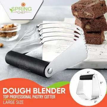 Show moreThe Spring Chef Dough Blender is a revolutionary kitchen tool designed to elevate your baking experience. This sturdy and durable blender features solid metal blades that are twice as thick as many competitors, enabling you to effectively cut cold butter into flour for that perfect crumbly texture in all your baked goods. Say goodbye to frustration as this tool works efficiently, mixing butter and flour for delicious results that will wow your friends and family.