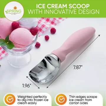 Why You Will Love This Product?Imagine the joy of serving ice cream without the struggle! The Spring Chef Ice Cream Scoop not only enhances your dessert enjoyment but also brings a level of fun to the scooping process. With its comfortable handle and efficient design, you'll appreciate how it makes every scoop an indulgent experience. Once you’ve tried this scoop, you won’t just want it—you'll wonder how you ever lived without it!