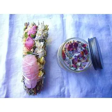 Spring Meadow Smudge Box | Luxury Floral Sage Wand Charged w/Rose Quartz & a 4 oz Smudging Candle Infused w/Botanicals & Crystals | Made in USA | Home Cleansing, Blessing, Manifesting, Rituals