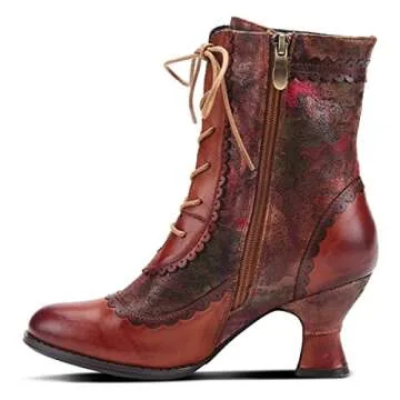 Spring Step LβArtiste Bewitch-Floral Booties for Women - Ankle Boots with Lace-Up and Zipper Closure - Comforble Boot for Women - Brown Multi EU 41 / US 9.5-10