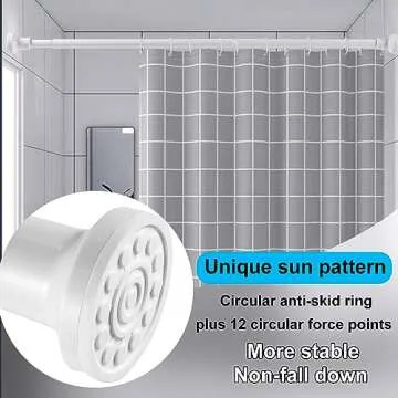 The shower curtain rod uses a powerful spring tension that grips the walls firmly, eliminating the need for drilling.