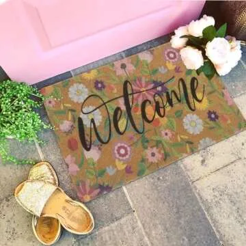 Spring Welcome Door-Mats Floral Coir Doormats - 30"x17"Non Slip Large Indoor Colorful Welcome Doormat for Entryway Outside Yard Home Decoration