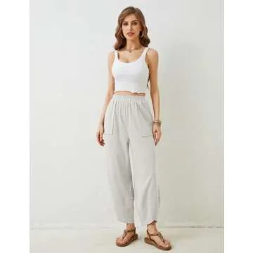 Springrain Womens Baggy Wide Leg Pants Cotton Elastic Waisted Loose Palazzo Harem Pants with Pockets(White-S)