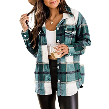 Springrain Women's Plaid Shacket - Cozy Flannel Shirt Jacket for Fall