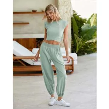 Springrain Womens Two Pieces Outfits Casual Lounge Sets Cropped Tops Sweatpants Tracksuit with Pockets(Teal-S)