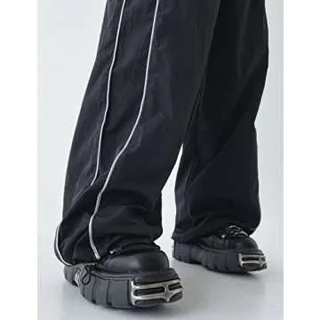 Springrain Womens Wide Leg Track Pants Slouchy Stripe Detail Jogger Sweatpants with Pockets(Black-S)