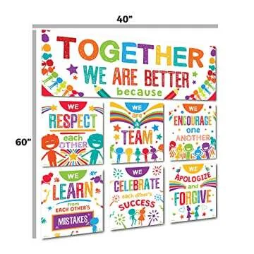 Sproutbrite Classroom Banner Decorations and Poster Bulletin Board Set - Together We Are Better
