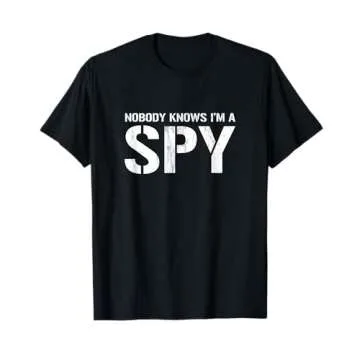 The 'Nobody Knows I'm A Spy' t-shirt comes in a range of sizes from Small to XXL to accommodate various body types.