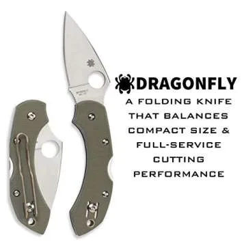 When placed alongside similar folding knives, the Spyderco Dragonfly stands out due to its unique VG-10 blade steel, which offers a superior balance of sharpness, durability, and ease of sharpening. Many competitors use lower-grade steels that do not maintain their edge as well. Additionally, the combination of the G-10 handle and the full-flat grind makes this knife lighter and more user-friendly, ensuring that it stands apart not just in design but also in functionality.