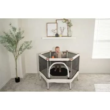 Square House Kids Trampoline (4-FT), Aesthetic Indoor and Outdoor Toddler Trampoline with Safety Net, Basketball Hoop, Ultra Safe No-Gap Design
