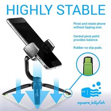 Show more Introducing the Jelly Grip WX Tripod Mount with Pro Tripod, a revolutionary product by Square Jellyfish designed to enhance your mobile photography and video experiences. This unique tripod mounts effortlessly to any surface, ensuring your smartphone stays stable and secure no matter where you are. Boasting a lightweight yet robust design, it is perfect for on-the-go usage while ensuring that your phone is protected. The innovative two-way clamp keeps your smartphone centered, providing unmatched stability that other tripods simply can't match.