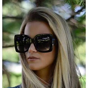 Square Oversized designer Polarized Sunglasses for Women Black Frame with Grey gradient Lens With Case and Cloth