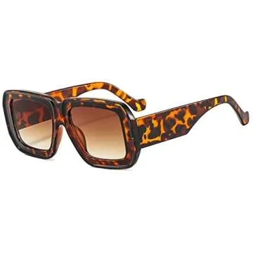 Square Sunglasses For Women Men Trendy Fashion Rectangle Sunglasses Uv Protection Retro Vintage Womens Sunglasses (leopard)