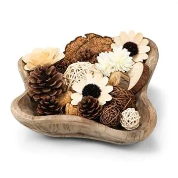 Square Wavy Live Edge Wooden Dough Bowl for Decor 10" Medium Natural Root Wood Hand Carved Decorative Wooden Farmhouse Fruit Bowl Handmade, Home Decoration Centerpiece, Dining Room Table Display Bowl