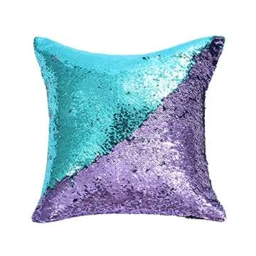 SquarePie Reversible Sequin Pillow Covers Set of 2, Flip Sequin Decorative Pillowcases, Magic Color Changing Sublimation Throw Cushion Cases,18x18 Inches Teal Blue and Light Purple