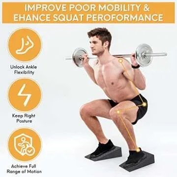 Show more This innovative Squat Wedge is your perfect partner in achieving optimal workout performance. Designed to elevate your heels, this squat wedge ensures improved balance and stability for those heavy lifting sessions. With enhanced mobility for your ankles, knees, and hips, you can say goodbye to poor form while minimizing your risk of injuries. Whether you're a seasoned athlete or just starting out, this versatile tool will help you achieve a full range of motion while reinforcing core strength. Crafted with high-quality materials, the Squat Wedge easily supports over 1500lbs, making it an essential piece of equipment for serious lifters.