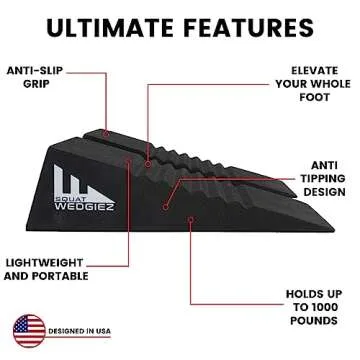 Squat Wedgiez Squat Wedge Pair For Knees Over Toes Training- Anti-Slip Squat Ramps for Lower Body Strength- Slant Board for Squats, ATG Split Squats,Calf Stretching- Squat Wedge Block with Free Video