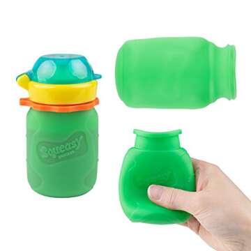 Squeasy Snacker Green 3.5 oz Spill Proof Silicone Reusable Food Pouch - For Both Soft Foods and Liquids - Water, Apple Sauce, Yogurt, Smoothies, Baby Food - Dishwasher Safe