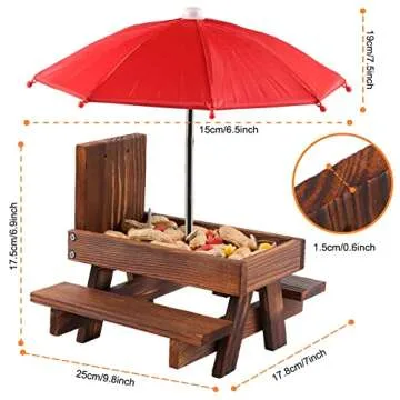 Squirrel Feeder Picnic Table with Umbrella, Wooden Squirrel Feeders for Outside with Corn Cobs, Cute Chipmunk Feeder with Solid Structure for Squirrel Gift (red)