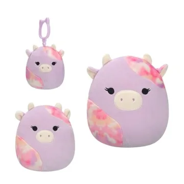 Show moreIntroducing the delightful Squishmallows Combo 3-Pack, showcasing the adorably designed Suri Sunset Cow in three charming sizes: 3.5-inch clip, 5-inch, and a cuddly 8-inch plush. Each piece is crafted from ultrasoft, high-quality materials, ensuring that they are incredibly soft and comfortable for hugging. The combination of bright colors and delightful personalities makes these plush companions irresistible to both kids and adults alike!