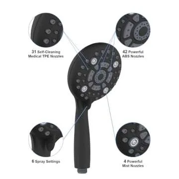 Experience the versatility of six innovative spray settings, including a gentle mist and a robust rain-like flow, effortlessly catering to your showering needs. Its 5-inch diameter provides ample coverage for a fulfilling cleanse, making it an excellent choice for households with children, seniors, or pets. This shower head not only guarantees better water flow and pressure, as echoed by our satisfied customers, but also enriches your bathing moments.