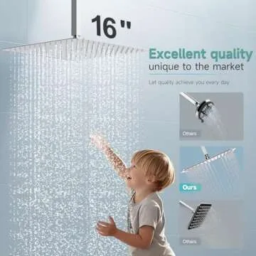 SR SUN RISE Luxury 16 Inch Extra Large Square Stainless Steel Shower Head High Pressure Rainfall Showerhead Ultra Thin Water Saving Polished Chrome 2.5 Gpm