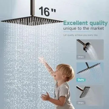 SR SUN RISE Luxury 16 Inch Extra Large Square Stainless Steel Shower Head High Pressure Rainfall Showerhead Ultra Thin Water Saving Oil Rubbed Bronze 2.5 Gpm