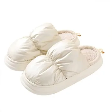 SRINBNIG House Slippers for Women Indoor Fluffy Memory Foam,Winter Warm Cozy Fuzzy Bedroom Shoes,Waterproof Puffy Down Slide Outdoor White 38/39