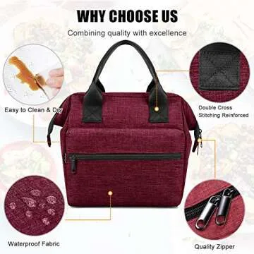 SRISE Lunch Bag for Women | Insulated Lunch Box Tote for Ladies | Cute Lunch Carrier Purse Durable Snacks Organizer for Work, Office | Fits 12 Cans (Red)