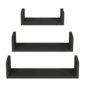 Show moreThe SRIWATANA Floating Shelves are an elegant solution for anyone looking to enhance their wall decor while maximizing storage space. Crafted from premium paulownia wood, these three stunning floating shelves bring a touch of modern elegance to any room. Their rich black finish allows them to blend effortlessly with various interior styles, making them a perfect fit for displaying books, plants, or cherished decorative items. With dimensions of L: 16.7 x 4.7 x 3.9 in, M: 14 x 4.7 x 3.4 in, and S: 9.6 x 4.7 x 2.8 in, these shelves are designed to accommodate your decorative needs, transforming bland walls into artistic displays.