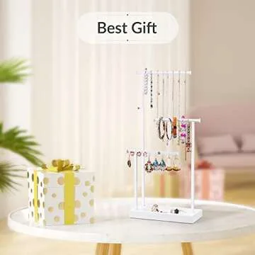 SRIWATANA Jewelry Organizer Stand, Extra Tall Jewelry Display Necklace Holder, Gift Idea (White)
