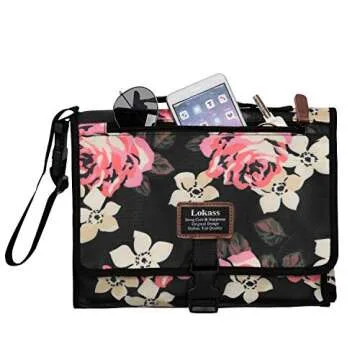 Srotek Portable Baby Changing Pad Lightweight Floral Diaper Clutch with Strap for Mom,Peony