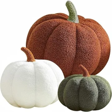 Show moreIntroducing the **Srutirbo Teddy Fleece Pumpkin Throw Pillows** – a delightful trio that captures the spirit of fall while adding a touch of whimsy to your home decor. Expertly designed to create a cozy, festive atmosphere, these pillows come in three charming sizes: an 8-inch soft green pumpkin, an 11-inch pristine white pumpkin, and a luxurious 14-inch deep brown pumpkin. Each pillow is crafted from premium ultra-soft teddy fleece, providing not just aesthetics, but unparalleled comfort that can enhance any space. The **PP cotton insert** ensures these cushions retain their fluffy shape without deformation, making them perfect companions for your couch, bed, or decorative display all year round.