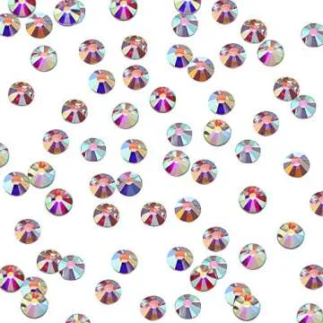 Show moreTransform your creative projects with our SS20 AB Crystal Diamond Rhinestones! This remarkable pack includes approximately 2000 dazzling crystal AB round beads, each carefully crafted to add a touch of sophistication and shimmer to any project. Made from high-quality glass, these flat-back rhinestones feature stunning iridescent color that catches the light effortlessly, making them the perfect embellishment for those who seek elegance and charm. With their exquisite 4.8 mm size, these rhinestones not only look luxurious but also bring a radiant sparkle that mimics real diamonds.