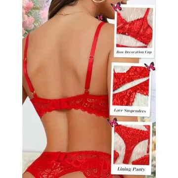 ssyyx Lingerie for Women,3 Piece Lace Lingerie Set Bra and Panty Sets with Garter Belt Babydoll Teddy Lingerie