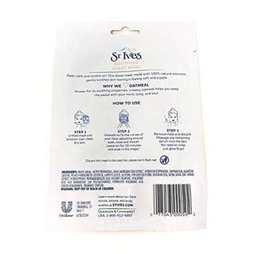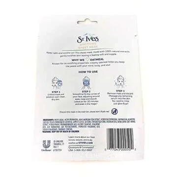 When comparing the St Ives Sooth Oatmeal Sheet Mask to other similar products on the market, it clearly stands out. While many competitors may contain harsh chemicals or synthetic fragrances, this mask prioritizes skin-friendly natural ingredients that offer genuine benefits without harmful side effects. Additionally, its unisex formulation makes it accessible to a broader audience than many commercially-targeted masks. The generous 2-pack also ensures exceptional value, allowing for multiple treatments, a feature not always available with other brands.