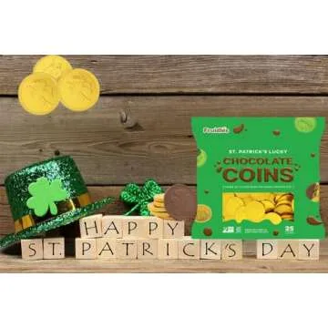 St. Patrick's Day 25 Chocolate Coins Gold Shamrock Coins Foils, Belgian Milk Chocolate Clover Coins Bag Nut-Free (25-Pack)