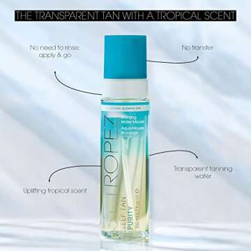 Show moreTransform your skincare routine with the ST TROPEZ Self Tan Purity Bronzing Water Mousse. This luxurious clear tanning water foam offers a flawless, streak-free finish that develops beautifully over 4-8 hours. Infused with a delightful floral scent, this vegan, natural, and cruelty-free formula is perfect for achieving a sun-kissed glow without the harmful effects of UV exposure. Whether you're getting ready for a special occasion or simply want to enhance your daily look, this self-tanner provides a radiant and even tan that is suitable for all skin types.