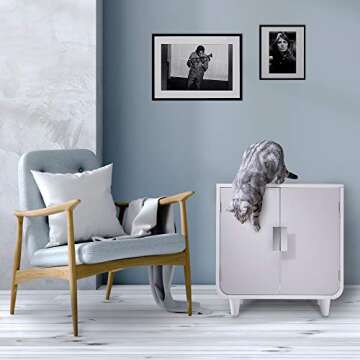 Show moreTransform your home into a stylish haven for your feline friend with the Staart Dyad Cat Litter Box Enclosure. This innovative piece of furniture seamlessly combines functionality with sophistication. Crafted with a classic mid-century design, the enclosure features a stunning white finish complemented by chic gray accents, making it a perfect addition to any modern decor. Say goodbye to unsightly litter boxes and embrace a solution that not only hides your cat’s essentials but also enhances your living space.