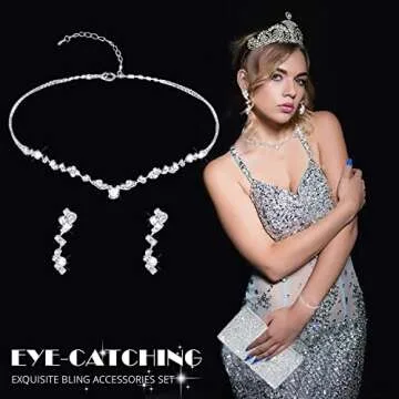 stablerice 4 Pieces Silver Clutch Purses Bag for Women Evening Rhinestone Jewelry Set Bling Necklace Earrings Bracelets Set for Wedding (Stylish Style)