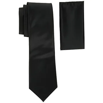Stacy Adams Men's Elegant Satin Black Tie Set with Pocket Square